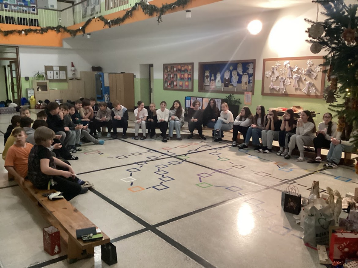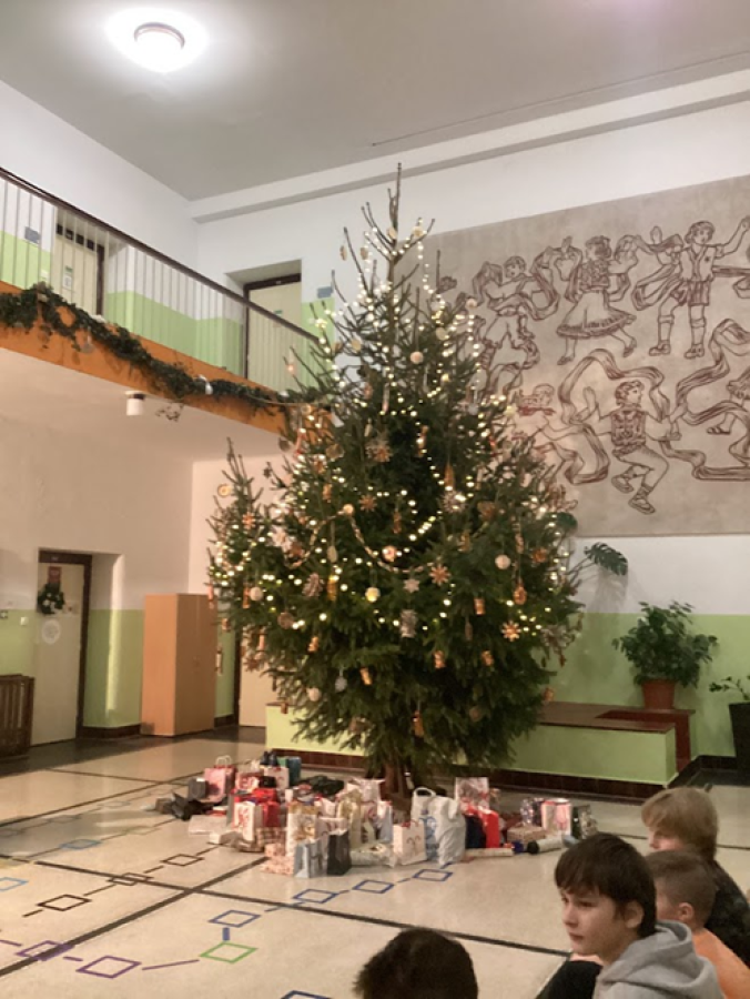 Vánoční besídku měli žáci 7. A a 7. B tradičně ve škole, u vánočního stromečku.