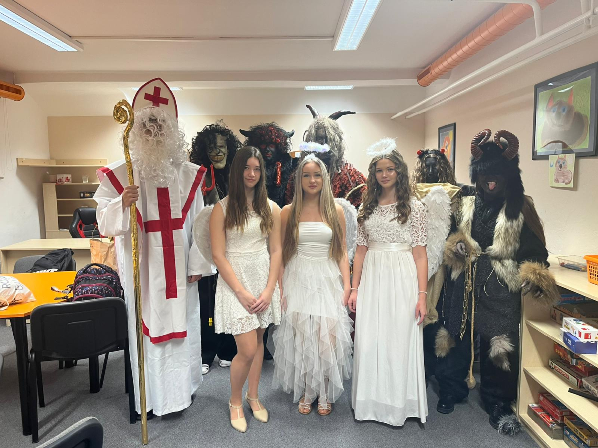 Mikulášská nadílka, tradiční akce Školního parlamentu, potěšila nejen žáky, ale i učitele. Čerti měli dostatek černého uhlí, a vůbec s ním nešetřili, zatímco andílci rozdávali sladkosti.